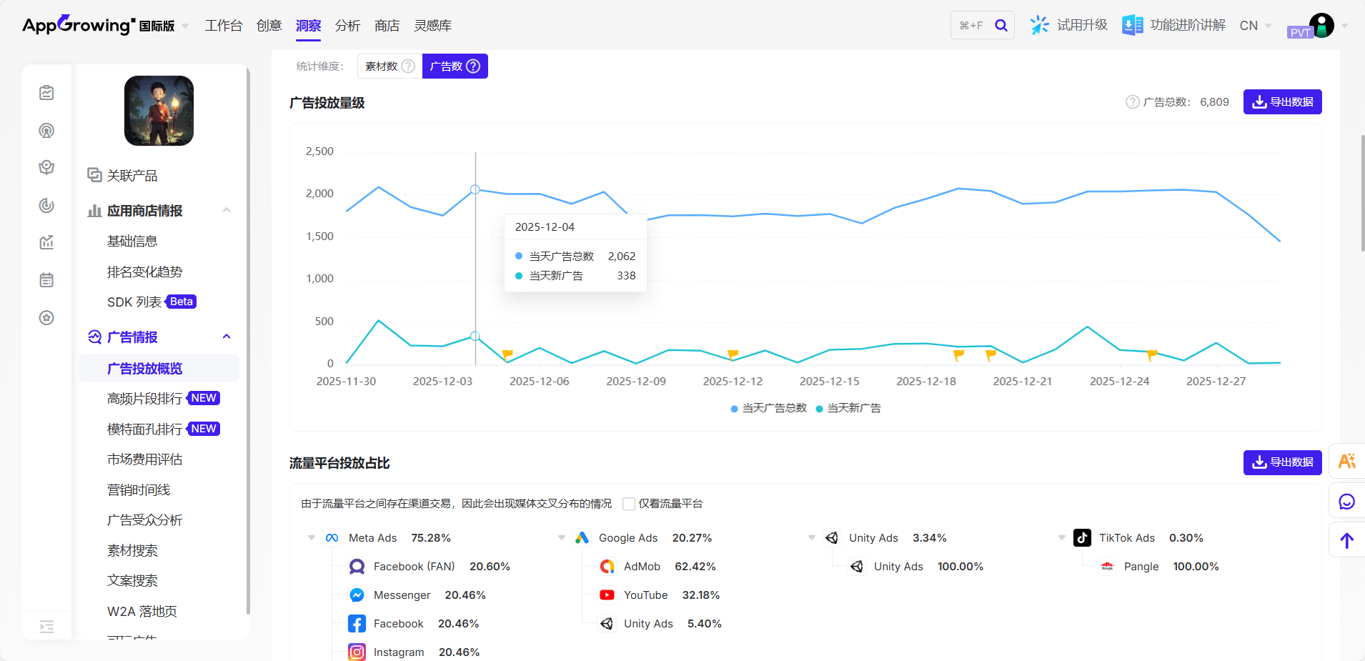 这一表现通常与高密度买量直接相关。通过短期集中投放,快速拉升下载量和活跃度,能够有效触发应用商店算法推荐,从而形成“广告投放 + 自然量增长”的正向循环。