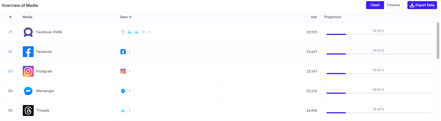 Dragon Traveler concentrated its media spend on Facebook Ads, which captured more than 10% of total placements.
