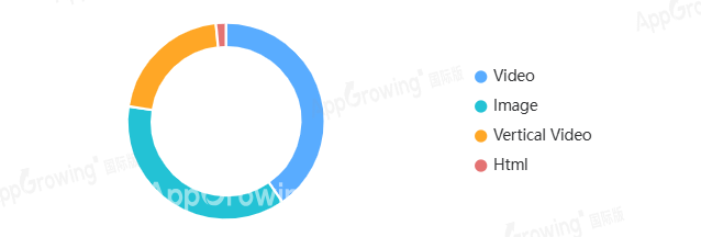 Creative formats mainly consisted of videos, which made up about 40.99% of all creatives.