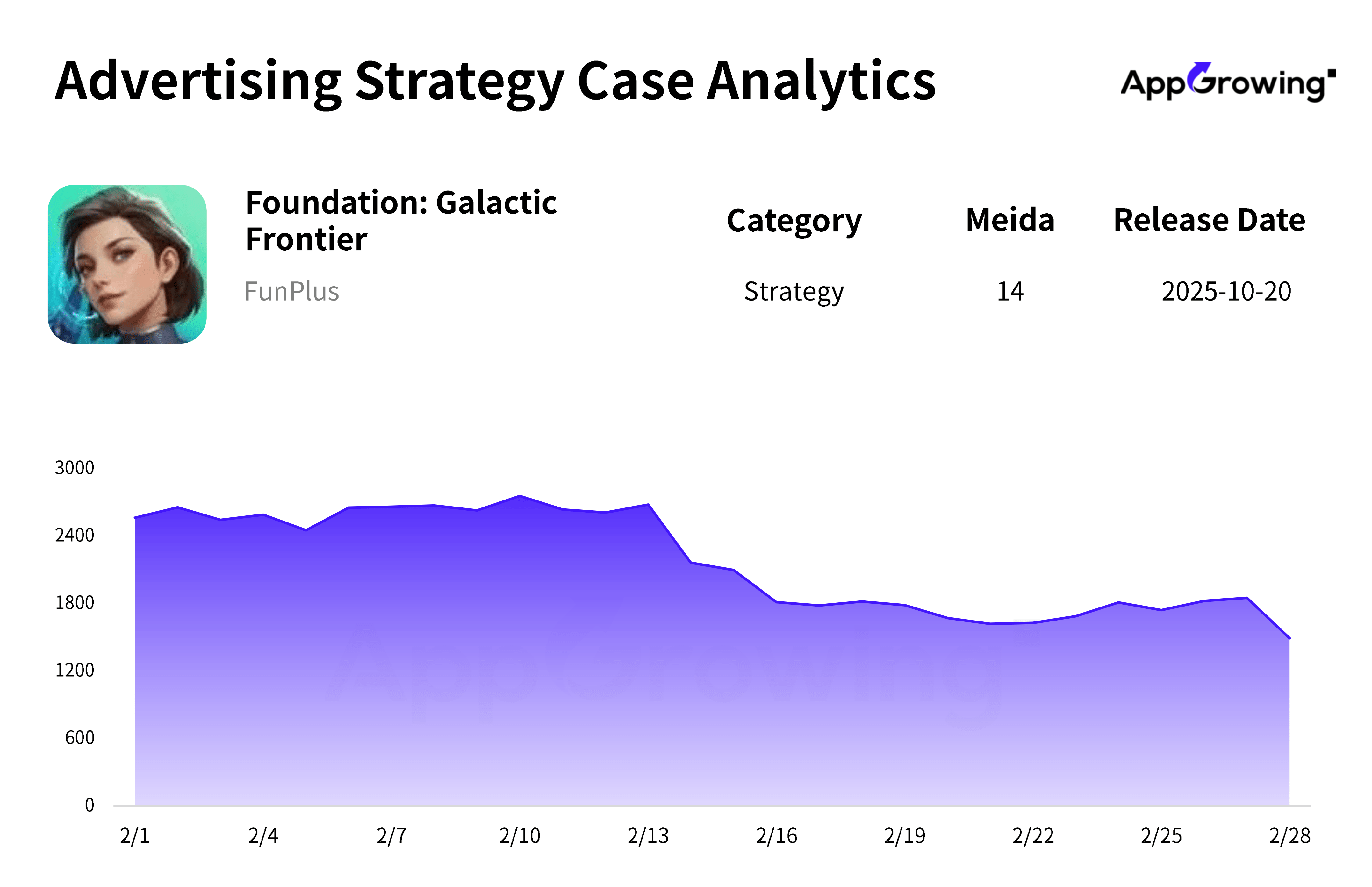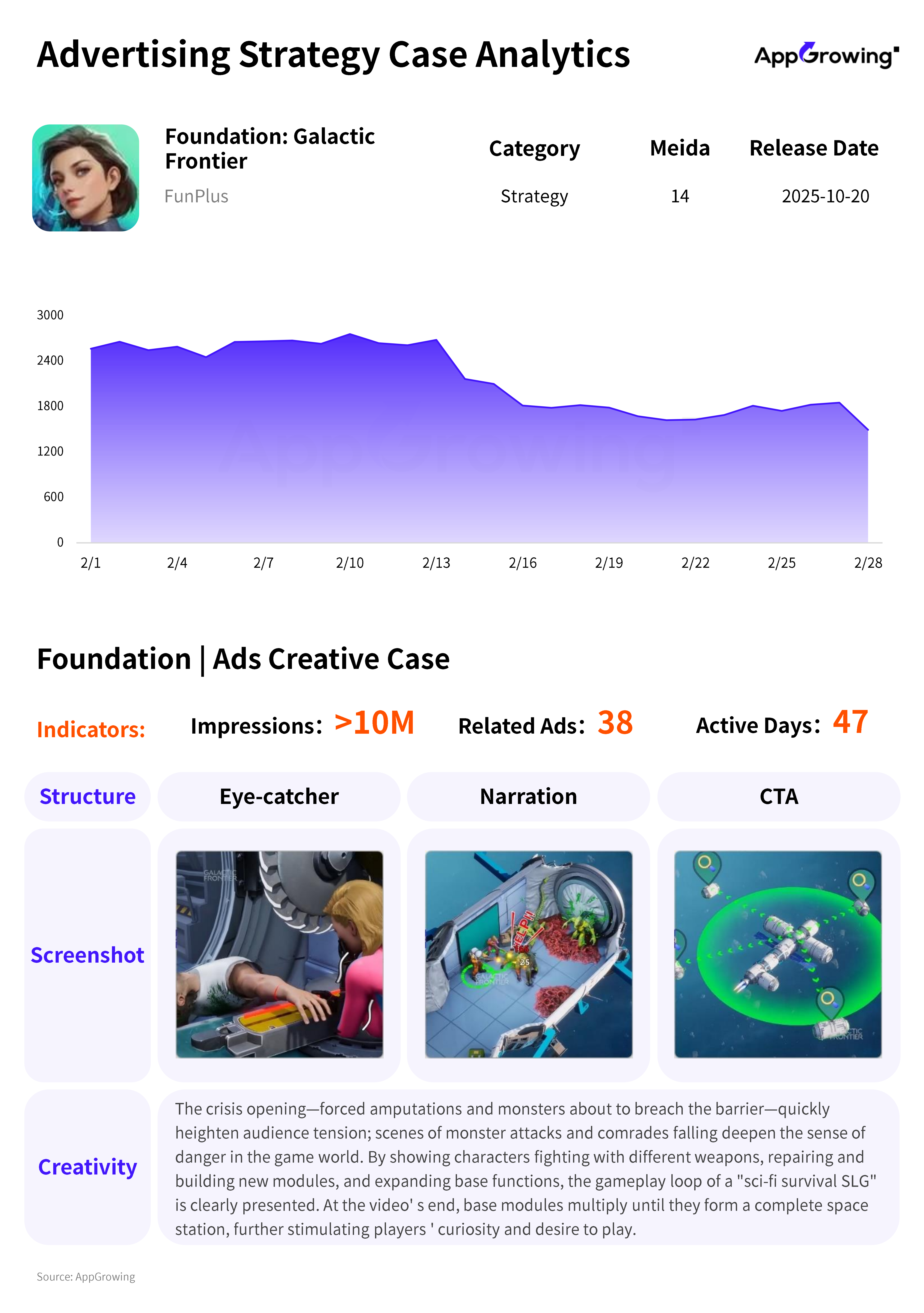 According to AppGrowing, Foundation: Galactic Frontier became Funplus’s primary promoted product in February, with ad share reaching 30.34%.