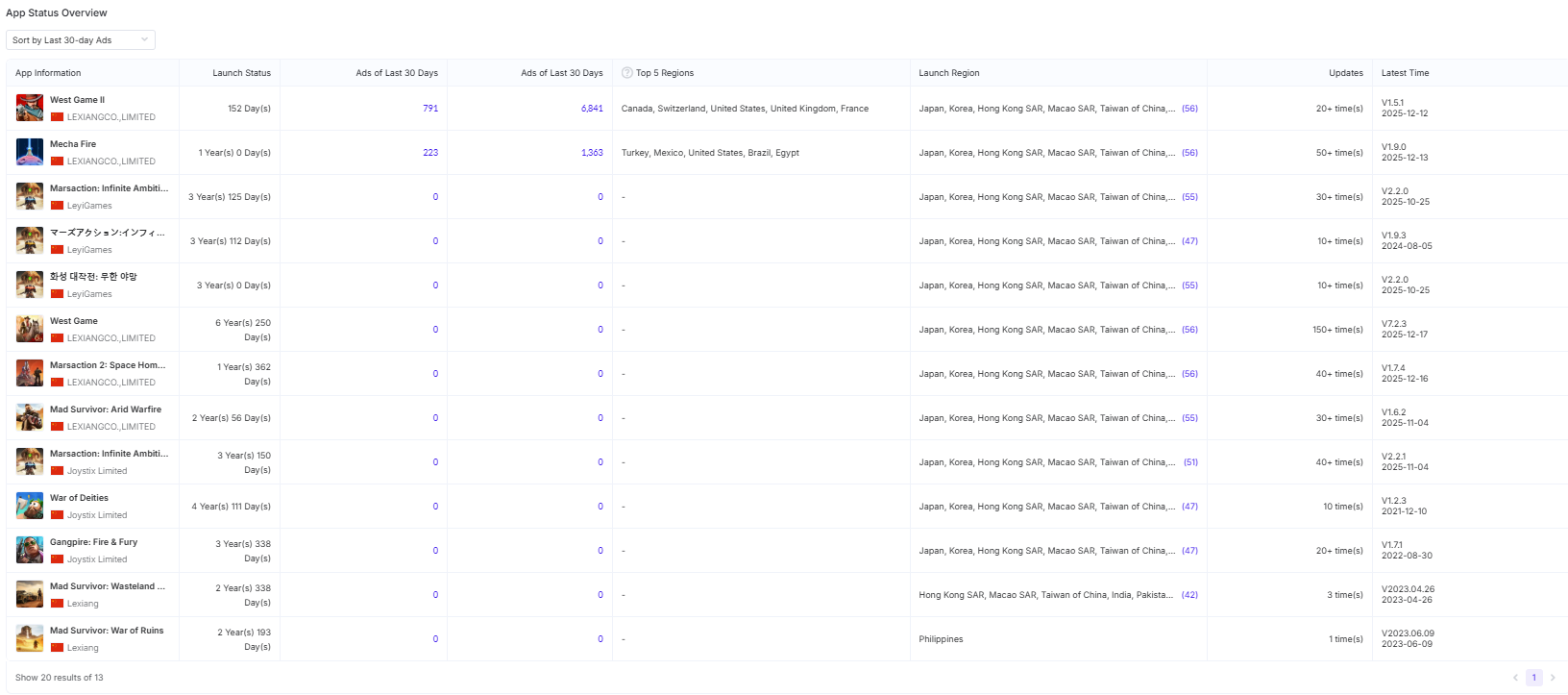 Subsequently, Leyi further focused on alien-themed content, launching "Mecha Fire" in January of this year based on the mainstream WOS-like framework and successfully innovating while inheriting the artistic style and gameplay essence of its past products. Since its launch, "Mecha Fire" has accumulated around 4.7 million downloads with estimated total revenue of 59 million yuan, becoming another key product for Leyi outside the "West Game" series.