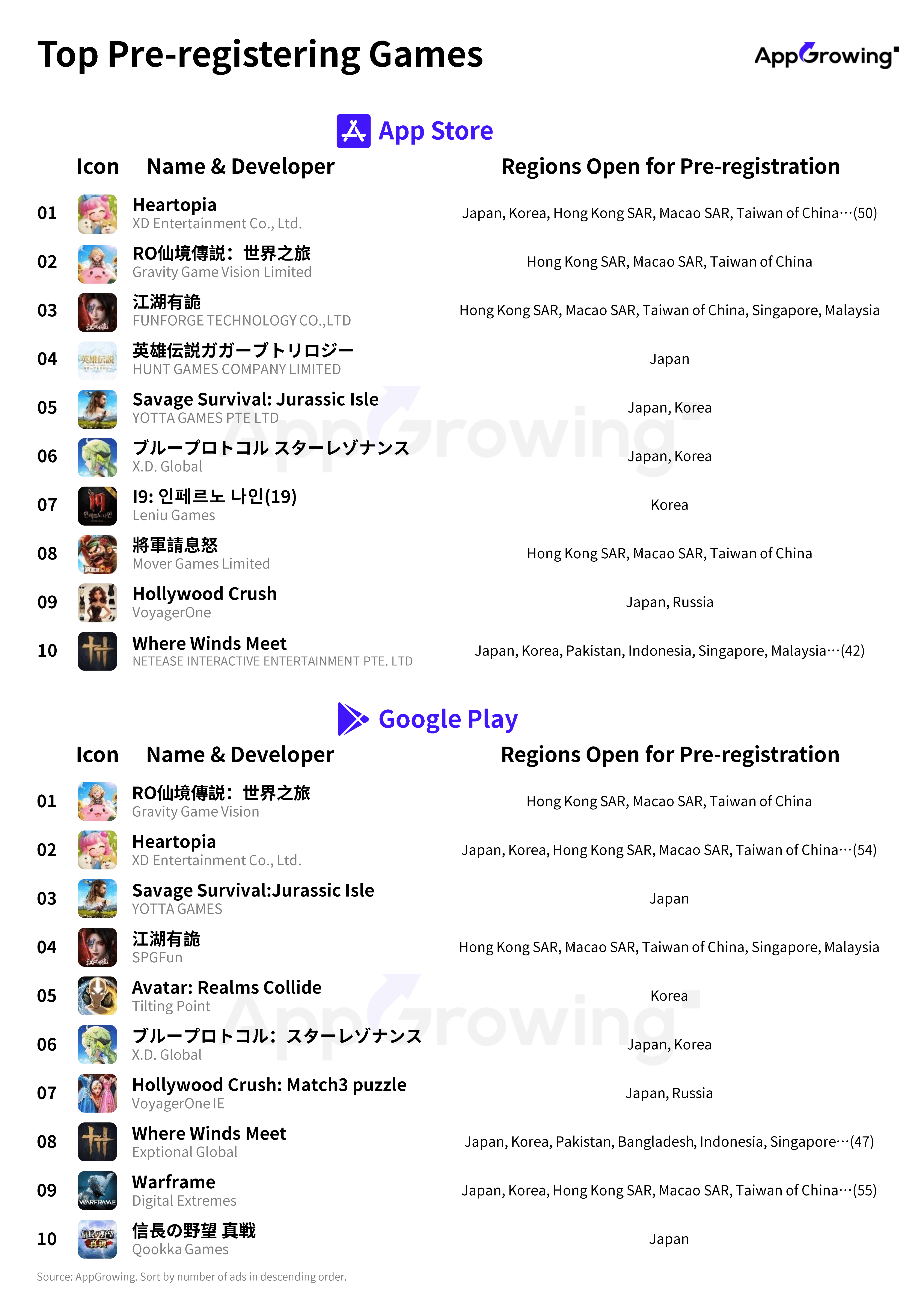 The top two spots on this period are held by X.D. Network's "Heartopia" and Gravity's "RO 仙境傳説:世界之旅," both of which are anime-style games. Another X.D. Network-published title, "ブループロトコル スターレゾナンス", ranked sixth in the dual-platform pre-registration list, mainly in Japan and South Korea.