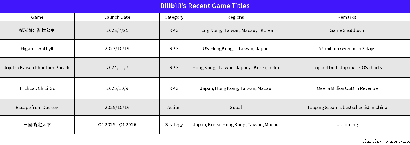 In July last year, during an investor forum, Bilibili publicly stated that it is accelerating its overseas gaming market expansion, positioning “agency and going global” as its core strategy. The company highlighted that it is currently in the third “five-year plan” for gaming, maintaining a dual approach of “self-developed and agency” titles, and continuously developing games favored by young players.