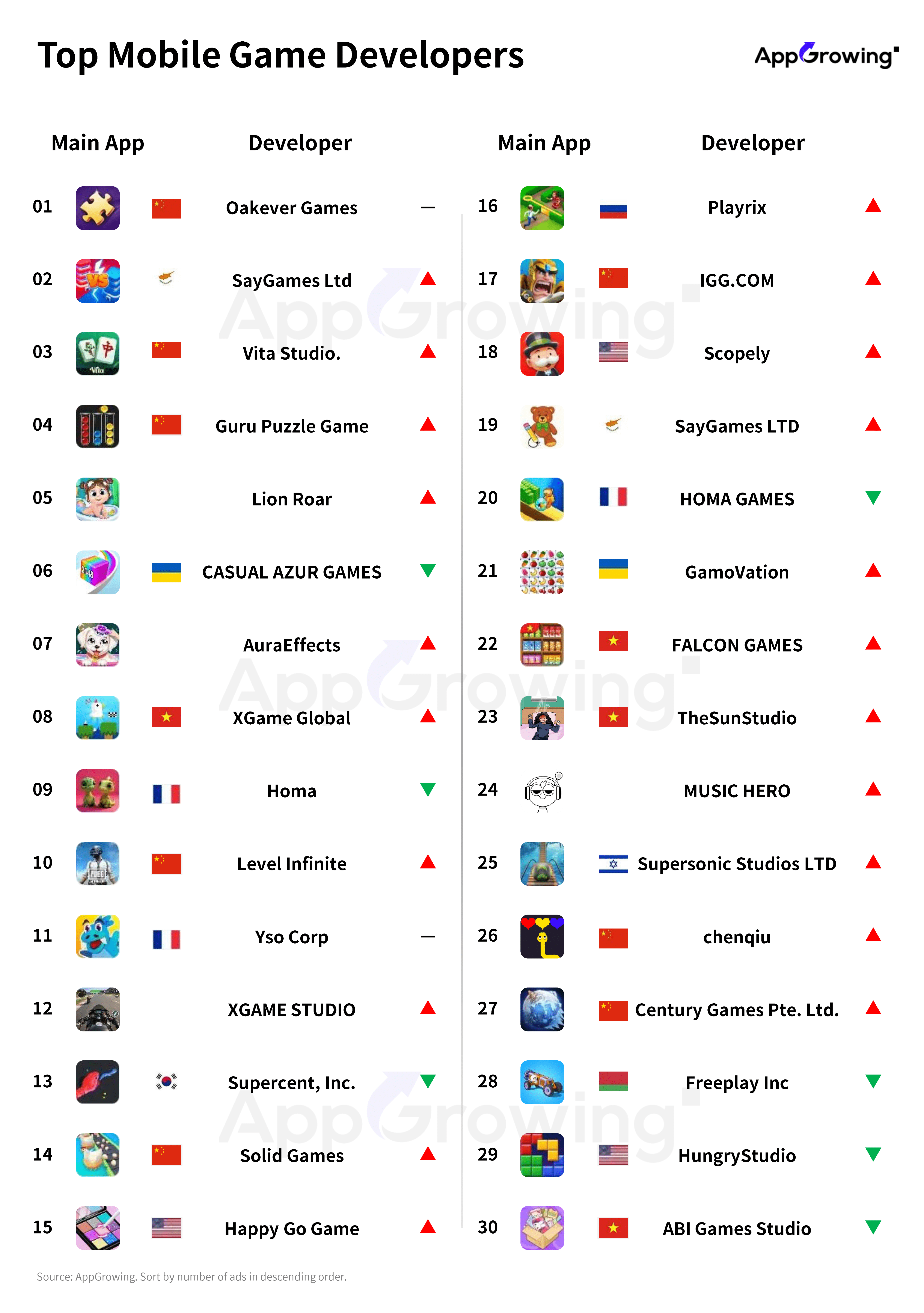 According to AppGrowing, the top ten game developers’ advertising rankings remain largely consistent with the previous period.
