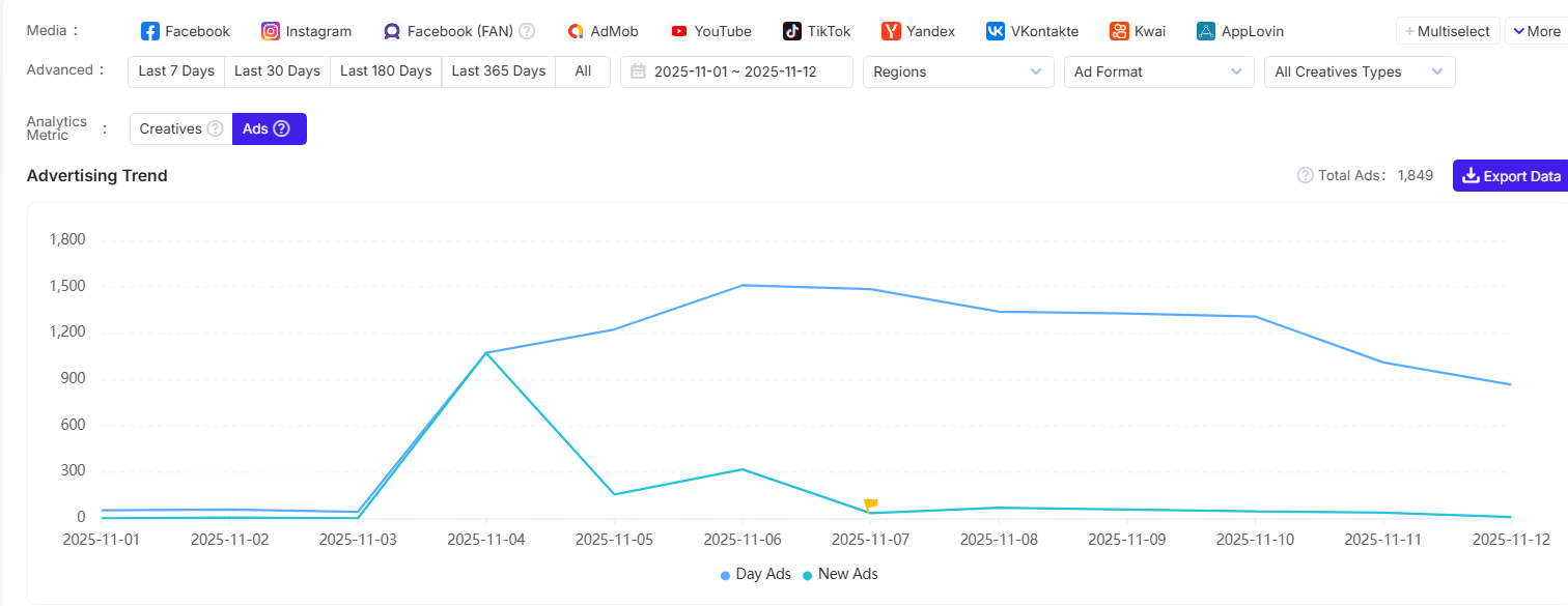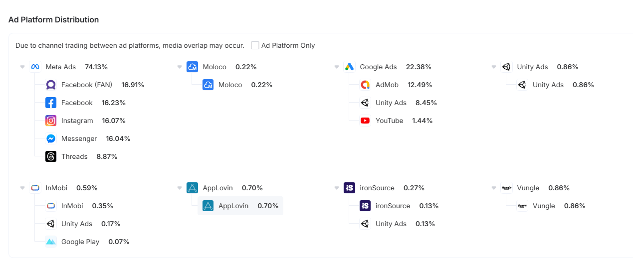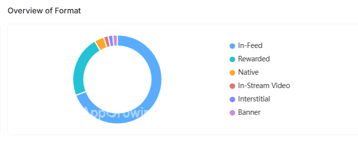 According to AppGrowing's data, In-Feed advertisements accounted for approximately 70.99% of total ad placements. These ads effectively capitalize on native social media environments by seamlessly blending into users' organic scrolling patterns, yet strategically interrupting their browsing flow with highly engaging content.
